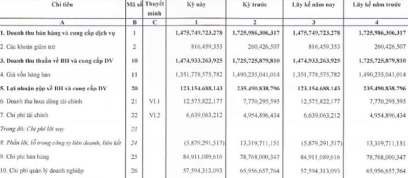 Doanh thu giảm trong khi chi phí tài chính và chi phí bán hàng của doanh nghiệp này lại lần lượt tăng 34% và 8%.