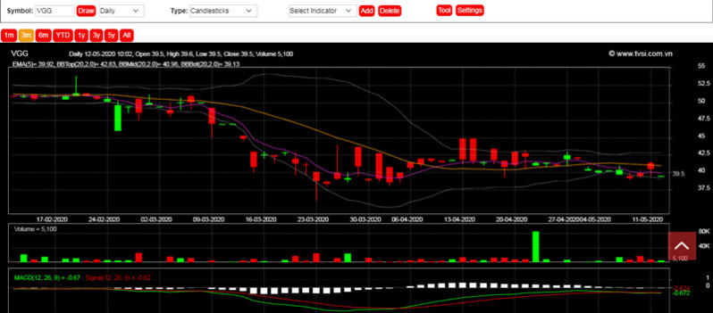 Cổ phiếu VGG đang lao dốc, từ tháng 3 đến nay cổ phiếu VGG mất 21% thị giá