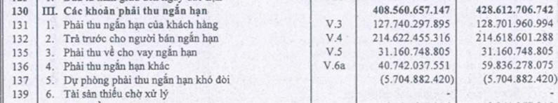 Một điểm đáng lưu ý là so với quý III, sang quý IV, tài sản doanh nghiệp bốc hơi 282,1 tỷ đồng, tương ứng với khoản phải thu giảm 261,2 tỷ đồng, doanh nghiệp không có thuyết minh cụ thể gì về sự giảm xuống tài sản mặc dù khoản phải thu giảm, tiền và doanh thu vẫn tiếp tục giảm mạnh. Điều này đặt ra sự hoài nghi về chất lượng tài sản trong báo cáo của doanh nghiệp.