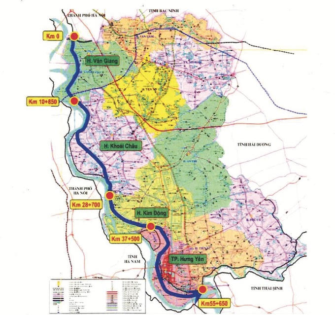Tuyến đường kết nối Di sản Văn hóa Du lịch và Phát triển Kinh tế dọc sông Hồng đi qua địa phận 3 huyện (Văn Giang, Khoái Châu, Kim Động) và TP Hưng Yên có chiều dài 55,68km, tổng mức đầu tư gần 10.000 tỷ đồng.