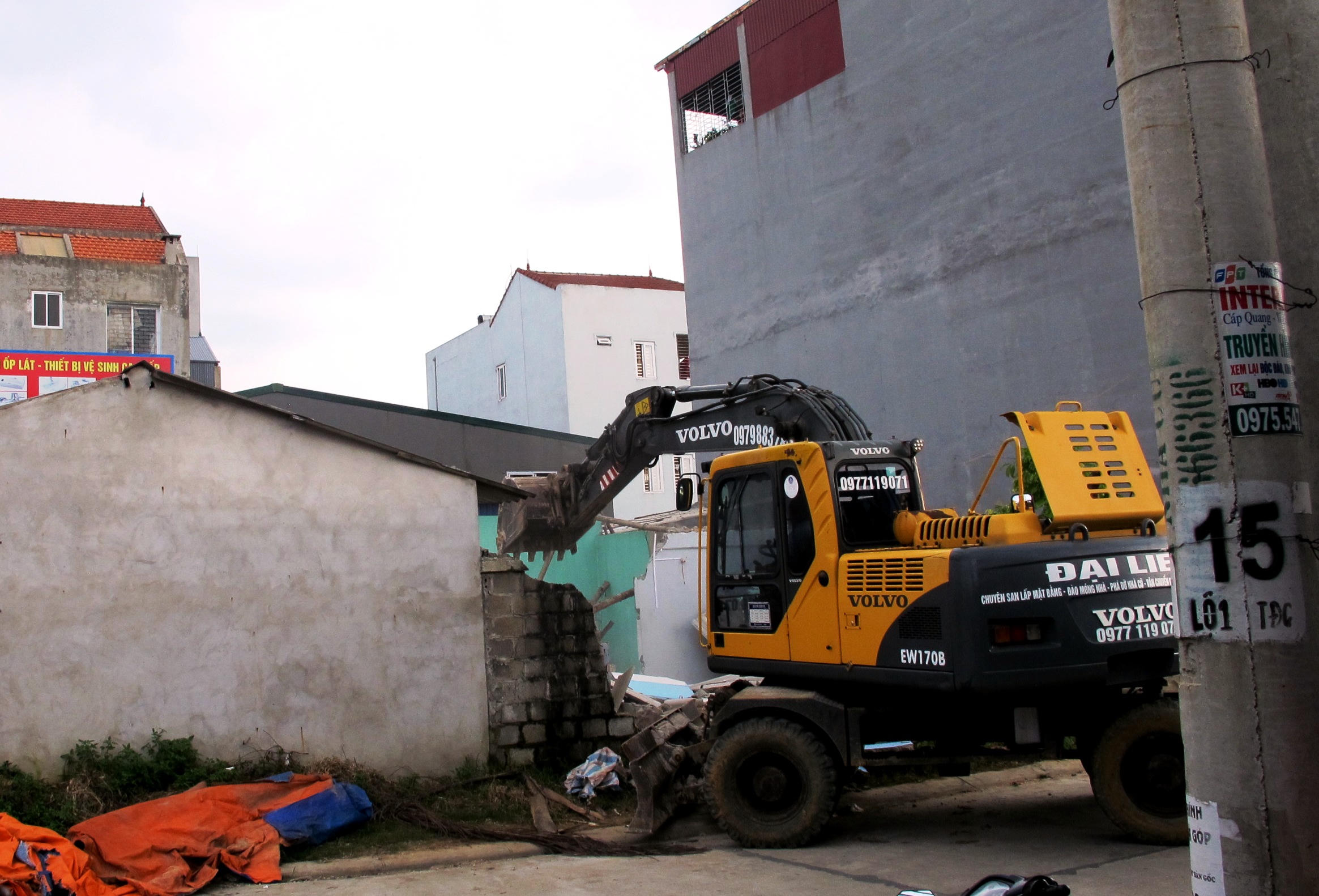 Không dừng lại ở đó, đến khoảng 16h cùng ngày, nhóm người này gọi máy xúc đến đập tan tành ngôi nhà cấp 4 của bà ở địa chỉ trên trước sự sợ hãi, ngỡ ngàng của bà Bài và những người xung quanh.