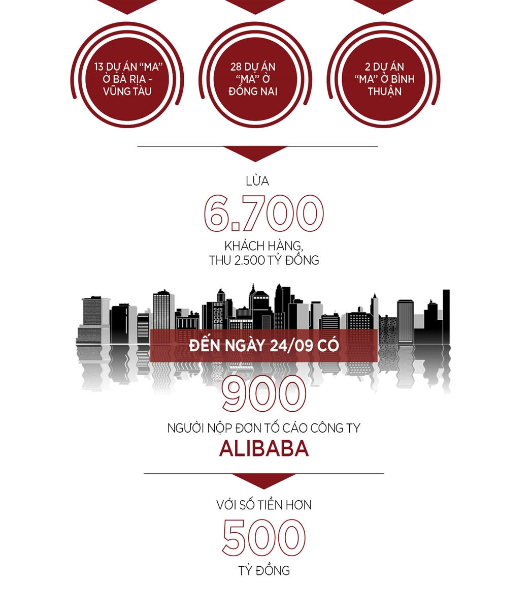 Vụ việc Công ty địa ốc Alilaba tung ra bán vài chục dự án không có thực khiến cho hơn 6.000 khách hàng lâm vào cảnh "tiền mất tật mang", thiệt hại lên tới hàng nghìn tỷ đồng.