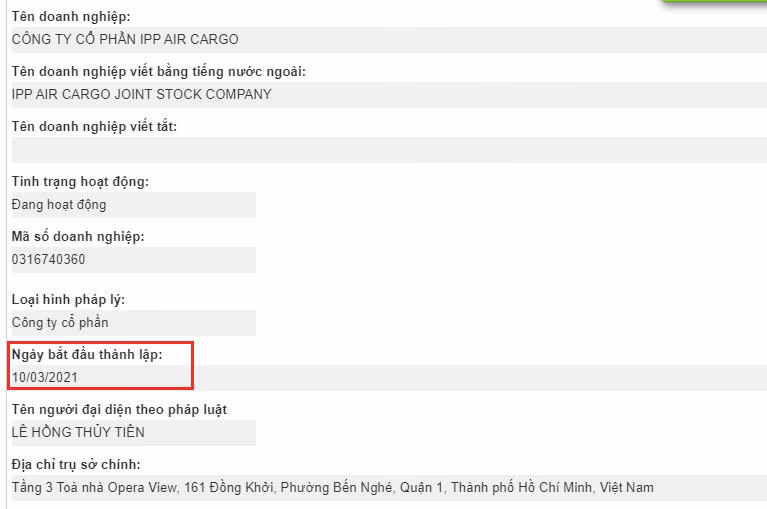 Theo tìm hiểu, IPP Air Cargo đăng ký kinh doanh vào ngày 10/3/2021 là công ty thành viên Tập đoàn Liên Thái Bình Dương (IPPG). Ông Johnathan Hạnh Nguyễn giữ vai trò chủ tịch IPPG đồng thời là chủ tịch IPP Air Cargo. Doanh nghiệp này có vốn điều lệ là 300 tỷ đồng, do bà Lê Hồng Thủy Tiên (vợ ông Johnathan Hạnh Nguyễn) làm Tổng Giám đốc kiêm người đại diện theo pháp luật. Bà Tiên cũng là Tổng Giám đốc của Tập đoàn IPPG..