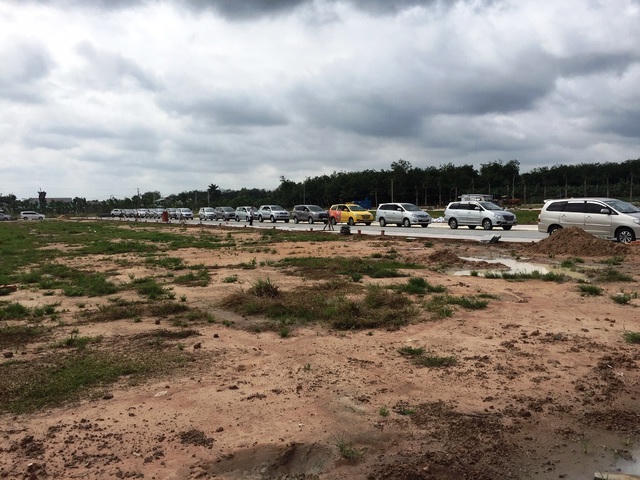 Hàng trăm chiếc xe 7 chỗ được Công ty Hoàng Hưng Thịnh huy động đưa khách từ các tỉnh Bình Dương, Bình Phước, Đồng Nai, TPHCM về dự án. Ảnh: Đại Việt