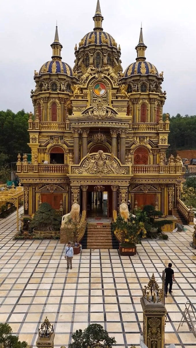 Bước từ cổng vào, "đập vào mắt" là tòa lâu đài dát vàng tráng lệ đến chói mắt. Được biết tòa lâu đài được dát vàng, bên trong còn nhiều chi tiết sáng chói.