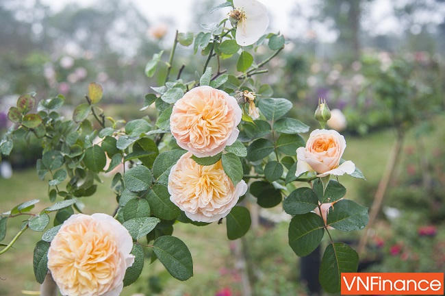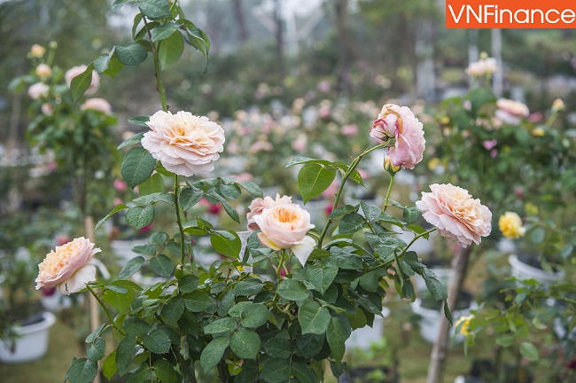 Trong khuôn viên, hoa hồng được trồng khéo léo, tinh tế, bài trí thành nhiều tiểu cảnh nhỏ xinh. Hoa trồng dọc theo những lối đi, uốn lượn thành vòm tại cổng chào, ngập tràn trong những khu vườn, neo đậu hững hờ bên bờ tường, cửa sổ…