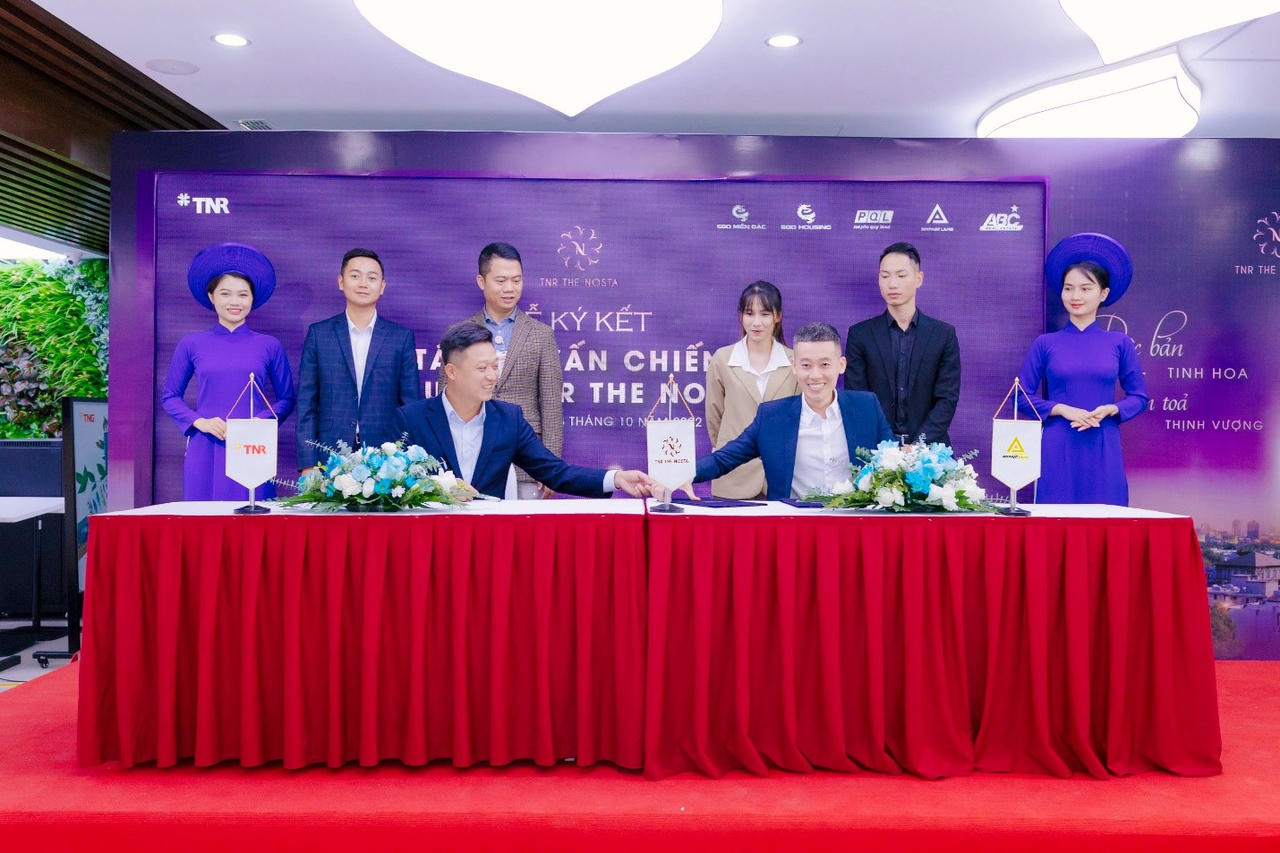 Lễ ký kết đơn vị tư vấn chiến lược dự án đã diễn ra vào ngày 8/10 vừa qua. Theo đó, 5 đối tác tư vấn đồng hành cùng TNR Holdings Vietnam để giới thiệu dự án TNR The Nosta bao gồm: SGO Miền Bắc, Phú Quý Land, SGO Housing, An Phát Land, ABC Land. Đây đều là các đơn vị đã có nhiều năm kinh nghiệm hoạt động trên thị trường bất động sản với đội ngũ tư vấn viên chuyên nghiệp và am hiểu thị trường.