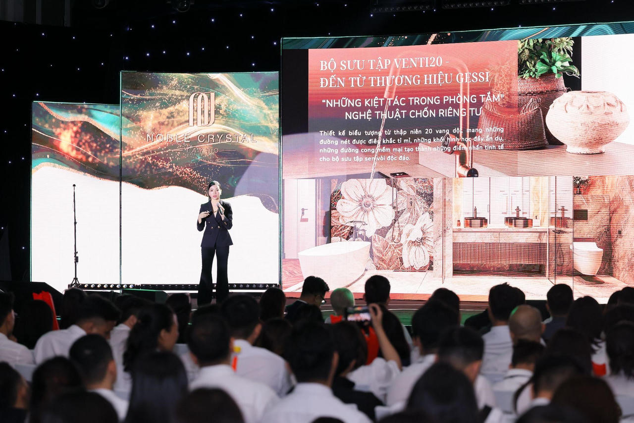 Sáng tạo đầy khác biệt, đầu tư kỳ công từ nội dung tới nghệ thuật, Lễ ra quân & ký kết đại lý phân phối chính thức dự án Noble Crystal Tay Ho - dự án đầu tiên trong bộ sưu tập bất động sản hàng hiệu của nhà phát triển Noble - được thiết kế như một bản giao hưởng với chủ đề “The Giver of Rhythm” (Từ giai điệu đến kiệt tác). Chủ đề này gửi gắm đến gần 1200 chuyên viên một thông điệp đặc biệt, với kỳ vọng họ không chỉ là những chuyên viên kinh doanh ưu tú mà còn là những “nhạc công tinh hoa” cùng góp phần khai mở kiệt tác Noble Crystal Tay Ho, dẫn lối cho những chủ nhân tinh tường đến với những trải nghiệm độc đáo của bất động sản hàng hiệu qua tác phẩm đắt giá này.