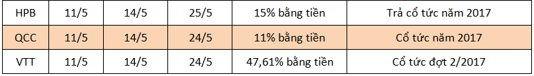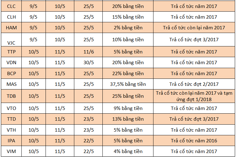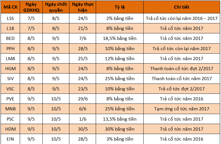 Lịch chốt quyền cổ tức tuần 7 - 13/5