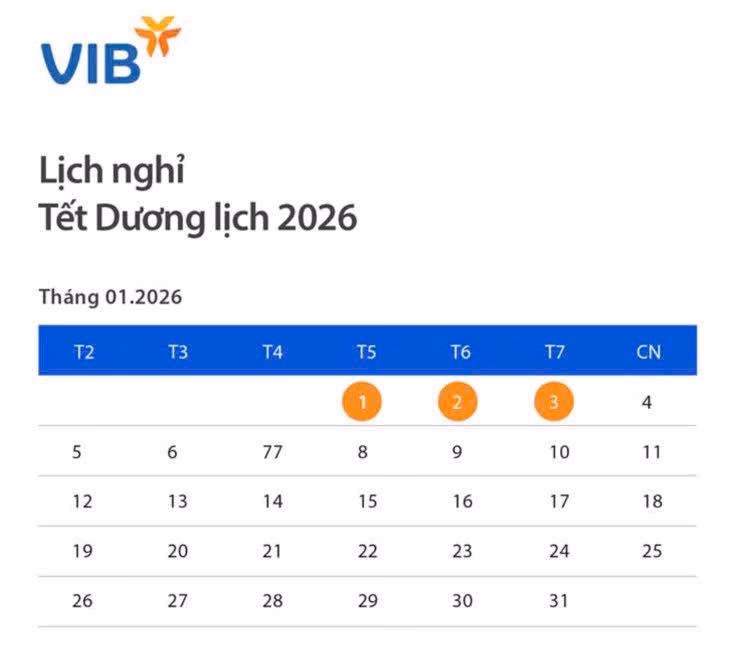Ngân hàng VIB nghỉ trong 3 ngày