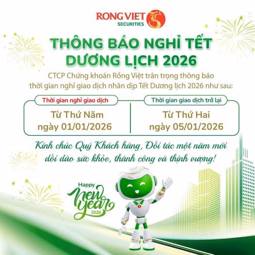 Chứng khoán Rồng Việt thông báo giao dịch trở lại từ 5/1/2026
