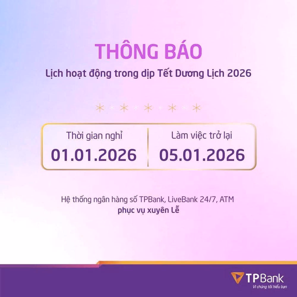 TPBank thông báo làm việc trở lại từ ngày 5/1/2026