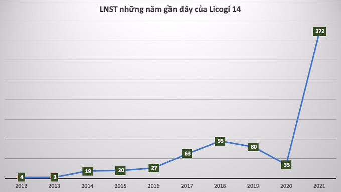 Khi L14 trở thành “hiện tượng”, nhà đầu tư quay trở lại xem xét tình hình kinh doanh của công ty thì thấy Licogi 14 là doanh nghiệp thuần hoạt động xây dựng. Năm 2021 của công ty đạt gần 167 tỷ đồng doanh thu, tăng 43% so với năm 2020 và lợi nhuận sau thuế tăng hơn 10 lần, lên 372 tỷ đồng, trong đó lợi nhuận sau thuế thuộc về cổ đông công ty mẹ đạt 215 tỷ đồng. EPS đạt 8.103 đồng.