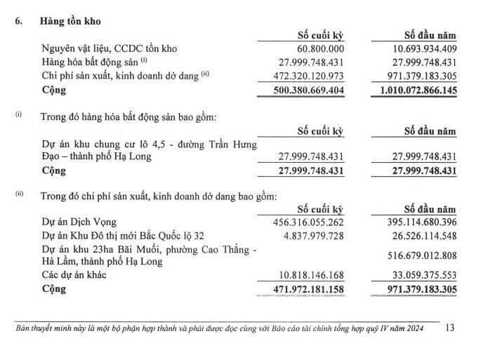 Cụ thể, Doanh thu năm 2024 đạt hơn 1.441 tỷ đồng, tăng 58% so với năm trước. Lợi nhuận sau thuế đạt gần 608 tỷ đồng, tăng trưởng 67% so với năm 2023. Công ty cho biết mức tăng trưởng này chủ yếu nhờ doanh thu từ diện tích đất đã bán tại dự án Khu đô thị Bãi Muối (TP. Hạ Long, tỉnh Quảng Ninh).