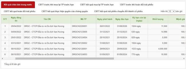Cụ thể, từ ngày 1/9 – 31/12/2021, Du lịch Vạn Hương cũng đã trải qua 5 đợt phát hành, qua đó huy động thành công gần 4.000 tỷ đồng trái phiếu.