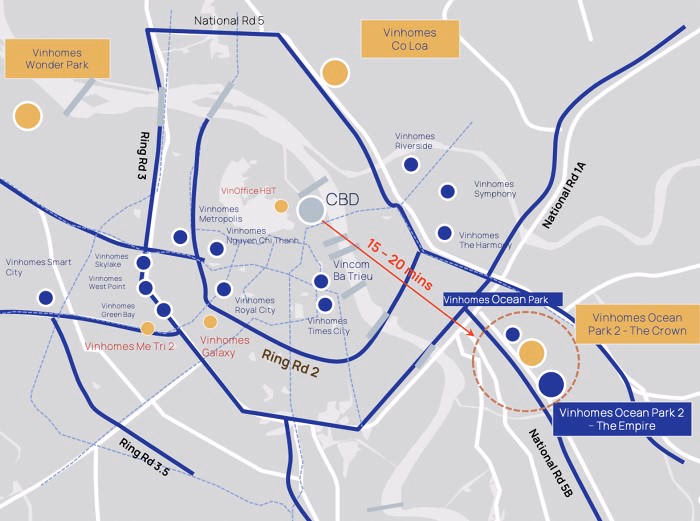 Dự án có vị trí tại tỉnh Hưng Yên, được hưởng lợi từ đường vành đai 3,5 trong khu vực lân cận Hà Nội và đường cao tốc Hà Nội - Hải Phòng. Dự án đã mở bán 5.300 căn hộ với giá bán trung bình là 1.300 - 2.200 USD/GFA m2 tại thời điểm cuối tháng 4.