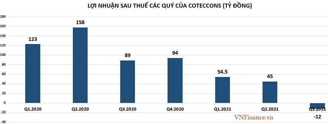 Quý 3 vừa qua, Coteccons lần đầu tiên báo lỗ với mức lỗ ròng gần 12 tỷ đồng. Trong quý 3, doanh thu thuần của Coteccons giảm 61% chỉ còn 1.070 tỷ đồng.