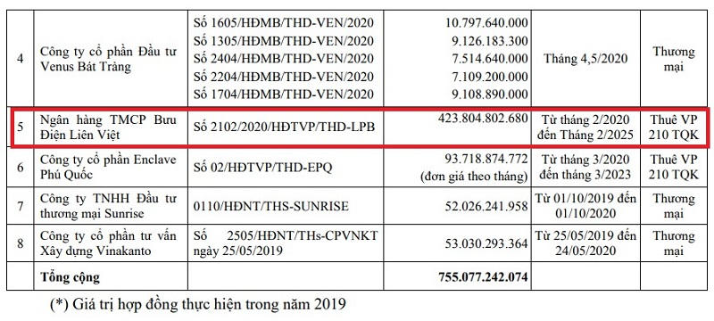 Ngoài ra, vào tháng 8/2020, ngân hàng LienVietPostBank chính thức công bố chuyển trụ sở chính về tòa nhà Thaiholdings Tower, số 210 Trần Quang Khải, quận Hoàn Kiếm, TP Hà Nội. Việc chuyển trụ sở chính nằm trong kế hoạch đã được thông qua tại Đại hội đồng cổ đông thường niên 2020 của LienVietPostBank tổ chức hồi tháng 6/2020 và hợp đồng thuê địa điểm với Thaiholdings đã được ký kết vào tháng 2. Thông tin từ Thaiholdings cho biết LienVietPostBank thuê từ tầng 1 đến tầng 6 của tòa nhà Thaiholdings Tower với giá trị gần 424 tỷ đồng trong 5 năm từ tháng 2/2020 đến tháng 2/2025.