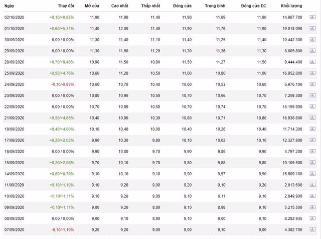 Cụ thể, khép phiên giao dịch ngày 2/10, cổ phiếu LPB đã cán mốc 11.900 đồng/cổ phiếu. Kéo theo đó là thanh khoản tăng vọt lên gần 15 triệu cổ phiếu được khớp lệnh. Như vậy, khoảng 1 tháng trở lại đây (từ 2/9/2020 – 2/10/2020) trung bình từ mỗi phiên giao dịch, cổ phiếu LBP đạt thanh khoản từ 3-19 triệu cổ phiếu/phiên.