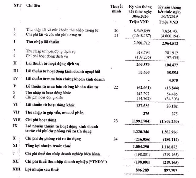 Cụ thể, quý 2/2020, lợi nhuận sau thuế của LienvietPostBank chỉ đạt 321 tỷ đồng, giảm 34% so với cùng kỳ 2019. Lũy kế 6 tháng đầu năm đạt 806 tỷ đồng, giảm 10% so với cùng kỳ năm ngoái.
