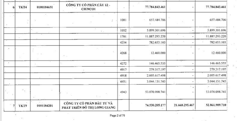 Công ty cổ phần thương mại và xây dựng 379 (quận Nam Từ Liêm) nợ hơn 345 tỷ đồng; Công ty Cổ phần đầu tư và phát triển Nhà Hà Nội số 68 (quận Bắc Từ Liêm) nợ hơn 26 tỷ đồng; Công ty TNHH Kiến trúc Phong cảnh Hà Nội (huyện Mê Linh) nợ hơn 23,4 tỷ đồng…