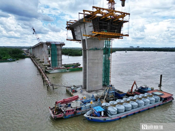 Trong tháng 9, nhịp chính đầu tiên của cầu ở giữa sông Đồng Nai sẽ được hợp long trước khi nối thông các nhịp khác vào đầu năm 2025.