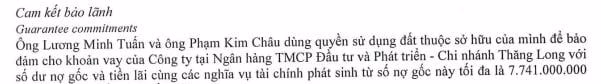 Tiếp theo là các khoản vay ngắn hạn gồm: Khoản vay Ngân hàng TMCP Đầu tư và Phát triển - Chi nhánh Thăng Long với hạn mức tín dụng 750.000.000.000 đồng để thanh toán công nợ với nhà cung cấp với lãi suất áp dụng cho từng món vay được quy định trong khế ước nhận nợ, thời hạn vay từ 6 đến 12 tháng. Khoản vay này được đảm bảo bằng việc cầm cố tài sản của các cá nhân là bên liên quan với công ty có ký hợp đồng cho mượn tài sản để cầm cố;