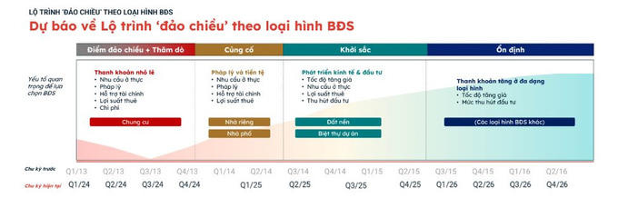 Cuối cùng, từ quý I/2026 đến quý IV/2026, đây sẽ là thời điểm thị trường đi vào quỹ đạo ổn định. Mức giá và khả năng thanh khoản tăng ở đa dạng loại hình. Người mua tiên tìm kiếm cơ hội đầu tư ở những phân khúc "hot" nhất, tốc độ tăng giá cao, thu hút sự chú ý, có số lượng ít.
