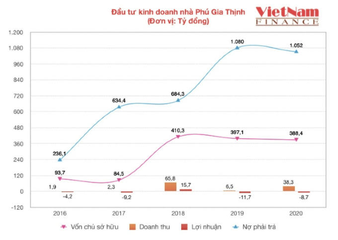 Thành lập ngày 5/7/2018, Tập đoàn Phú Gia Thịnh suốt 3 năm sau đó không hề phát sinh doanh thu, cho dù vốn điều lệ tương đối lớn với 300 tỷ đồng. Doanh nghiệp lỗ ròng 2,8 tỷ đồng và 1,9 tỷ đồng ở 2019-2020, khiến vốn chủ sở hữu giảm còn 294 tỷ đồng vào cuối năm ngoái.