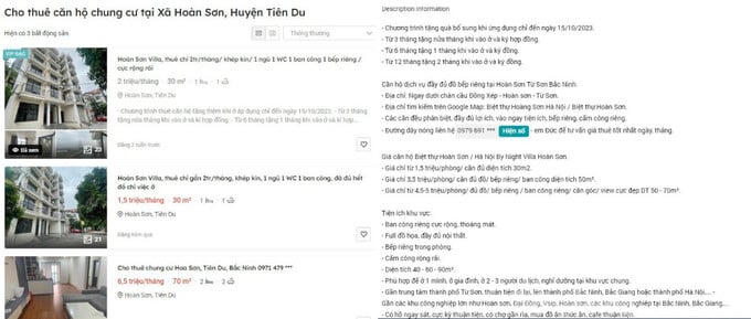 Trên trang mạng xã hội Facebook, page Hanoi By Night Villa Hoàn Sơn đăng tải chi tiết các thông tin cho thuê và người liên hệ thuê nhà. Trong đó các căn hộ đều có đầy đủ nội thất giường, tủ…và các tiện ích khác, khách thuê tại đây chỉ cần dọn đến và ở. Không phải mua sắm thêm bất cứ vật dụng đồ dùng gì khác.