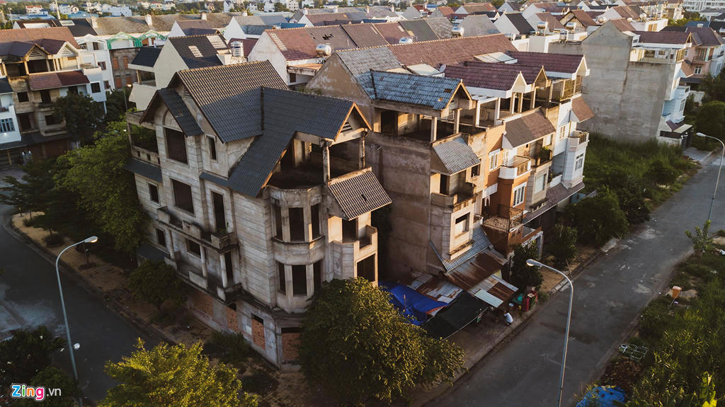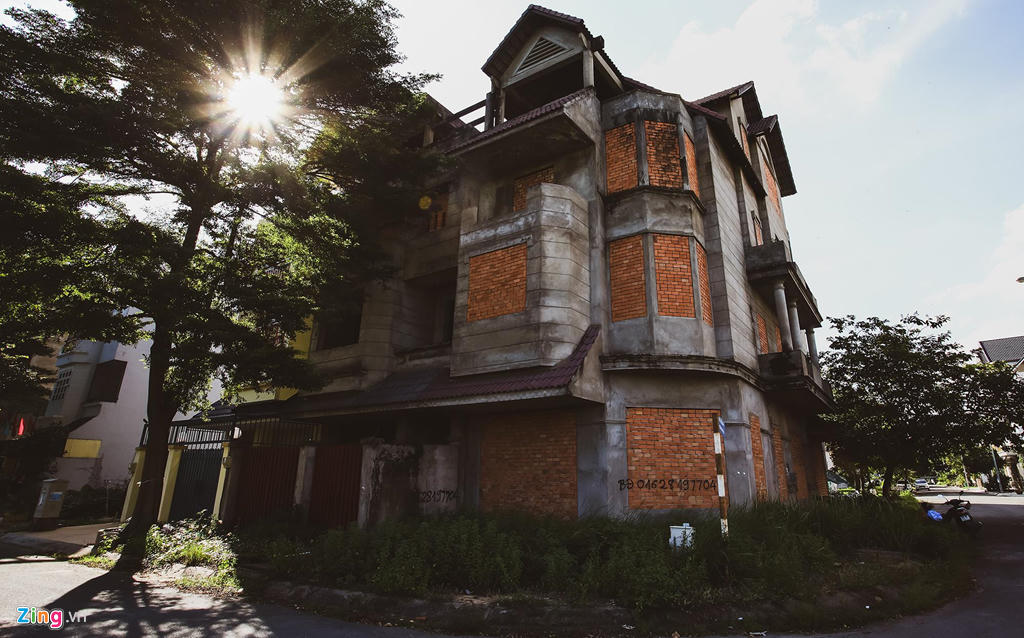 Đa số những căn biệt thự bỏ hoang tại đây đều xây tường bịt kín mọi cửa ra vào.
