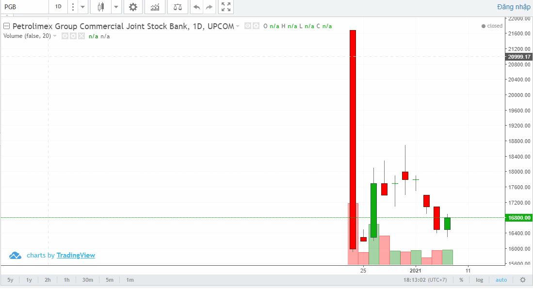 Sau 8 ngày lên sàn (24/12/2020 – 7/1/2021), cổ phiếu PGB tăng 5%, từ 16.000 đồng/cp lên 16.800 đồng/cp.