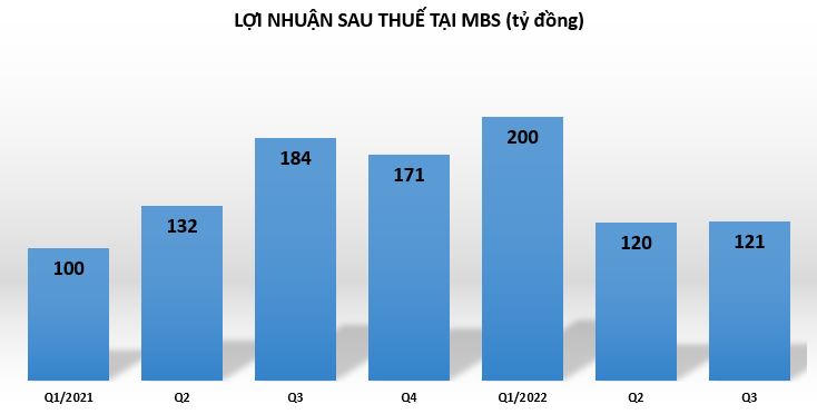 CTCP Chứng khoán MBS (mã: MBS) cũng không khấm khá cho mấy khi ghi nhận lãi sau thuế quý 3/2022 hơn 121 tỷ đồng, giảm 34% so với cùng kỳ. Nguyên nhân chủ yếu do các mảng môi giới, tự doanh, bảo lãnh phát hành đều sụt giảm về doanh thu.