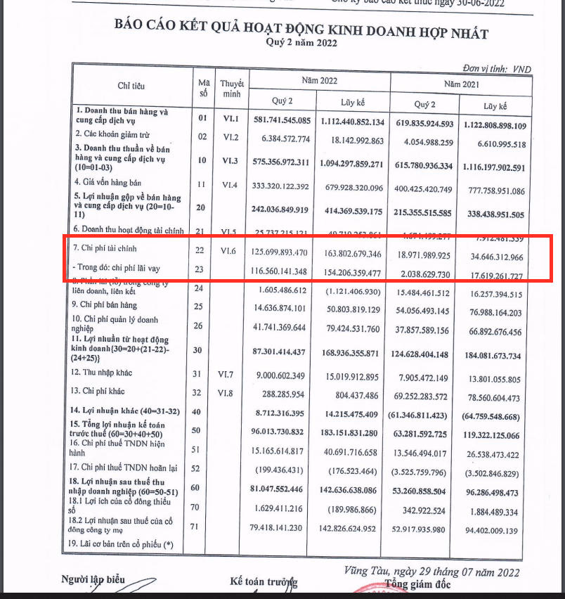 Duy trì các khoản nợ vay cũng khiến chi phí tài chính của doanh nghiệp kỳ này tăng mạnh, từ gần 19 tỷ đồng cùng kỳ năm 2021 lên gần 126 tỷ đồng trong quý 2 năm nay. Trong đó, chi phí lãi vay gần là 116 tỷ đồng, trong khi cùng kỳ năm trước chỉ ở mức 2 tỷ đồng.