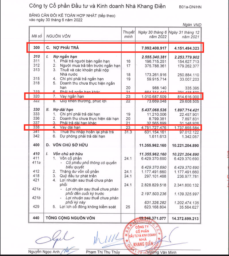 Đáng chú ý, nợ phải trả của Nam Long tính đến ngày 30/6/2022 ghi nhận trên 12.070 tỷ đồng, tăng 19,6% so với đầu năm. Trong đó, nợ ngắn hạn là 7.294 tỷ đồng, tăng 15% so với đầu năm; nợ dài hạn ghi nhận 4.776 tỷ đồng, tăng gần 27% so với đầu năm.