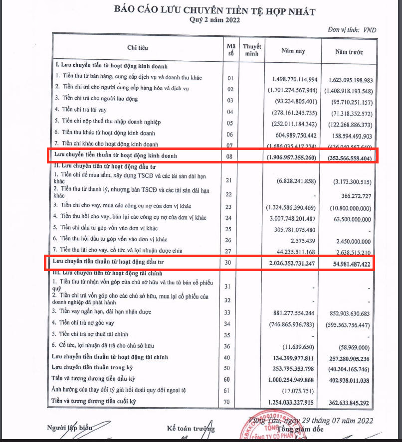 Công ty cổ phần Đầu tư LDG (Mã CK: LDG), trong 6 tháng đầu năm 2022, dòng tiền kinh doanh chính tiếp tục âm 516,5 tỷ đồng so với cùng kỳ âm 416,4 tỷ đồng. Ngoài ra, dòng tiền đầu tư dương 34,7 tỷ đồng và dòng tiền tài chính dương 718.2 tỷ đồng, chủ yếu tăng vay nợ. Như vậy, trong 6 tháng đầu năm, LDG đã tăng vay nợ để bù đắp thâm hụt dòng tiền kinh doanh.