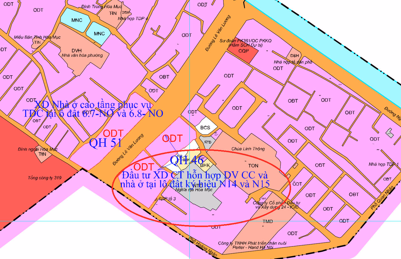 Bản đồ quy hoạch phân khu H2-2 của TP Hà Nội cũng cho thấy, tại khu vực đầu đường Lê Văn Lương, đoạn ngã tư Lê Văn Lương – Nguyễn ngọc Vũ có một khu đất với chức năng là đất ở đô thị, trong đó có đề tên Tổng Công ty Đầu tư và Phát triển Nhà Hà Nội (Handico). Mặt tiền khu đất kéo dài khoảng hơn 300 m, nằm tiếp giáp đường Lê Văn Lương ở phía đông nam; phía tây nam giáp đường Hoàng Ngân; phía đông bắc giáp đường Nguyễn Ngọc Vũ.