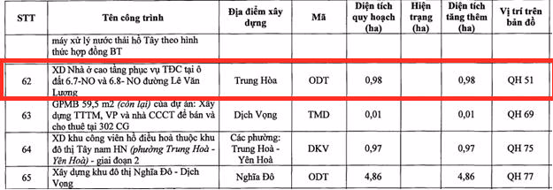 Cụ thể, khu đất dự án 6.7-NO, 6.8-NO nằm tại ô quy hoạch có ký hiệu QH 51, thuộc địa phận phường Trung Hòa, có diện tích 0,98 ha, chức năng là đất ở đô thị.