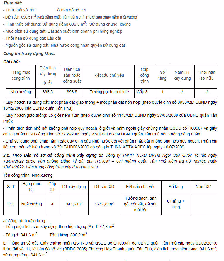 Ngoài ra, BIDV rao bán nhà xưởng tại Phú Thọ cũng là tài sản bảo đảm cho nghĩa vụ trả nợ của doanh nghiệp trên với giá khởi điểm là 20 tỷ đồng. Giá khởi điểm chưa bao gồm thuế VAT (nếu có) và các khoản thuế, phí, lệ phí để làm thủ tục đăng ký sang tên quyền sử dụng, sở hữu tài sản.