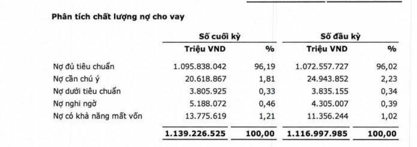 Trong khi đó, dư nợ cho vay khách hàng chỉ tăng nhẹ 2% so với đầu năm, đạt gần 1.14 triệu tỷ đồng khiến tỷ lệ nợ xấu trên dư nợ cho vay khách hàng tăng từ 1,75% lên mức 2%.