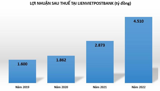 Nhờ đó, lợi nhuận thuần từ hoạt động kinh doanh tăng đến 79%, thu được 8.863 tỷ đồng. Dù trong năm LienVietPostBank dành ra gần 3.174 tỷ đồng để dự phòng rủi ro tín dụng, tăng gấp 2,4 lần năm 2021 nhưng Ngân hàng vẫn thu được gần 5.690 tỷ đồng lãi trước thuế, tăng 56%.