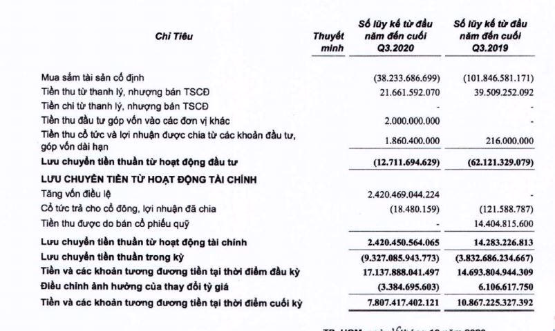 Chưa kể, chất lượng sử dụng nguồn tiền cũng ghi nhận nhiều con số âm. Cụ thể, lưu chuyển tiền thuần từ hoạt động kinh doanh ghi nhận âm gần 10.136 tỷ đồng; lưu chuyển tiền thuần từ hoạt động đầu tư âm hơn 169 tỷ đồng; lưu chuyển tiền thuần trong kỳ ghi nhận âm gần 10.305 tỷ đồng,…