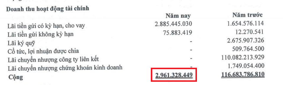 Trong khi đó, chi phí tài chính lại tăng 12% lên hơn 30 tỷ đồng, do không còn được hoàn nhập dự phòng giảm giá chứng khoán kinh doanh hơn 13 tỷ đồng như năm trước. Ngoài ra, phí mượn tài sản thế chấp cũng gấp gần 4 lần với 4 tỷ đồng.