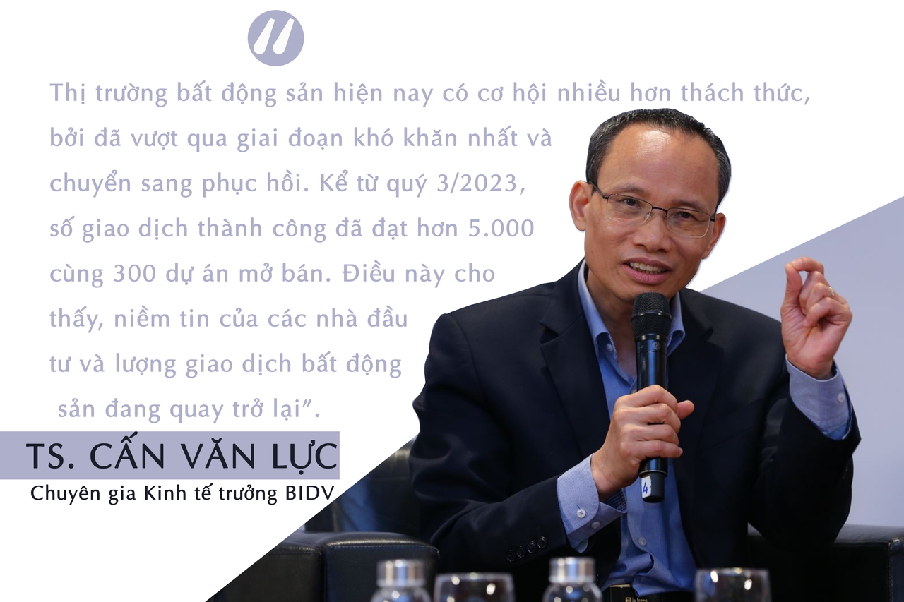 Trước đó, nhìn nhận về thị trường bất động sản ở giai đoạn hiện tại, TS. Cấn Văn Lực - Chuyên gia Kinh tế trưởng BIDV và Thành viên Hội đồng Tư vấn Chính sách Tài chính - tiền tệ Quốc cho rằng, có thể nói, thị trường BĐS đã qua giai đoạn khó khăn nhất và đang dần phục hồi từ tháng 5/2023 đến nay; quý II tốt hơn quý I (tăng 7 điểm % về lượng giao dịch BĐS nhà ở); các khu công nghiệp có tỉ lệ lấp đầy hiện nay khoảng 76%. Ngoài ra, trên thị trường chứng khoán, theo đánh giá của nhà đầu tư, giá cổ phiếu BĐS tăng 18% và giá cổ phiếu doanh nghiệp xây dựng tăng 39%...