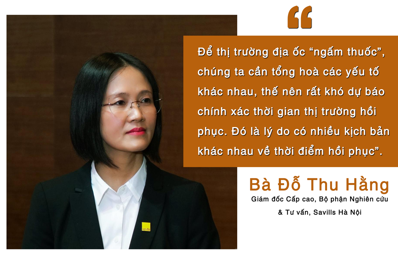 Đánh giá về những yếu tố tác động đến sự hồi phục của thị trường bà Đỗ Thu Hằng, Giám đốc Cấp cao, Bộ phận Nghiên cứu & Tư vấn, Savills Hà Nội cho rằng, yếu tố đầu tiên liên quan sự hồi phục của thị trường là việc sửa đổi luật, như Luật Đất đai, Luật Kinh doanh Bất động sản… Nếu việc này được làm quyết liệt và được thông qua như dự kiến cũng như có văn bản hướng dẫn sau đó thì có thể vào thời điểm quý IV/2023, thị trường sẽ có chuyển biến. Ngoài ra, sự hồi phục của thị trường còn phụ thuộc vào việc tiếp cận và hấp thụ vốn ngân hàng. Vốn ngân hàng là yếu tố quan trọng tác động đến tâm lý, quyết định của người mua.