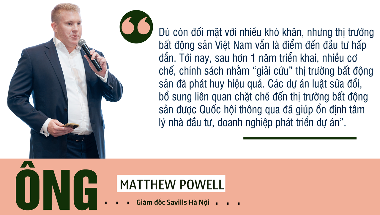 “Một điểm dễ thấy nhất là sắc xanh đã trở lại với cổ phiếu nhóm ngành bất động sản. ‘Sắc xanh’ ở đây không chỉ phản ánh đà tăng giá của cổ phiếu, mà còn thể hiện triển vọng đầy tích cực của thị trường bất động sản”, ông Lực nhấn mạnh.