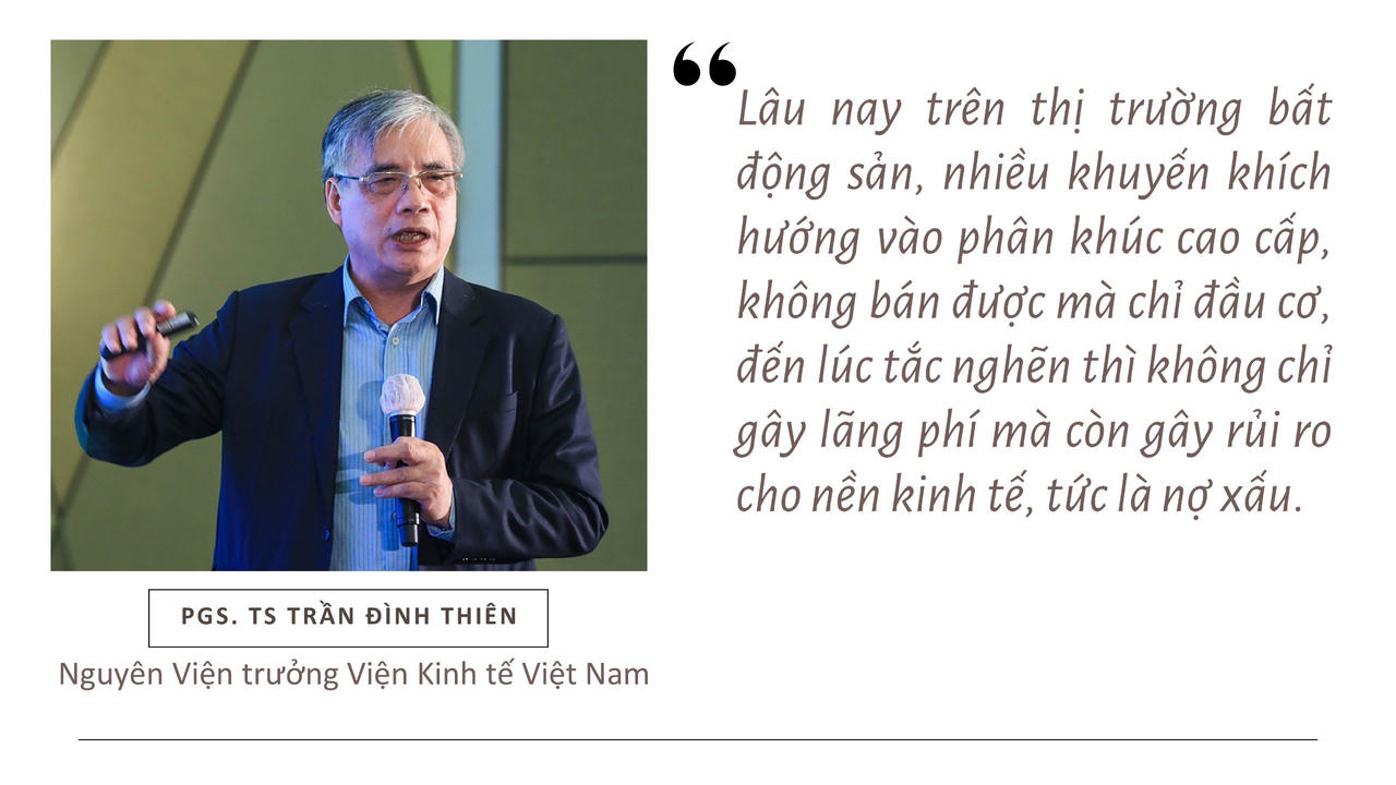 PGS. TS Trần Đình Thiên cho biết thêm, liên quan đến những vấn đề của bất động sản, Chính phủ đã vào cuộc một cách quyết liệt và mạnh mẽ. Điều này đang hé ra những điểm sáng nhất định, còn thực hiện được hay không thì còn phải chờ thêm thời gian.