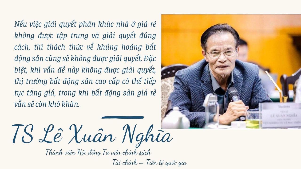 Liên quan đến vấn đề này, TS Lê Xuân Nghĩa nhấn mạnh: “Để đẩy được nguồn cung giá rẻ, điều quan trọng là phải xây dựng được cơ chế để các doanh nghiệp tích cực tham gia. Chúng ta cho đến nay vẫn chưa tạo được mặt bằng giá nhà ở và chưa giải quyết được khủng hoảng thị trường”. Trong khi đó, PGS. TS Trần Đình Thiên nhận định, lâu nay, thị trường chỉ tập trung vào phân khúc cao cấp mà quên đi phân khúc bình dân.