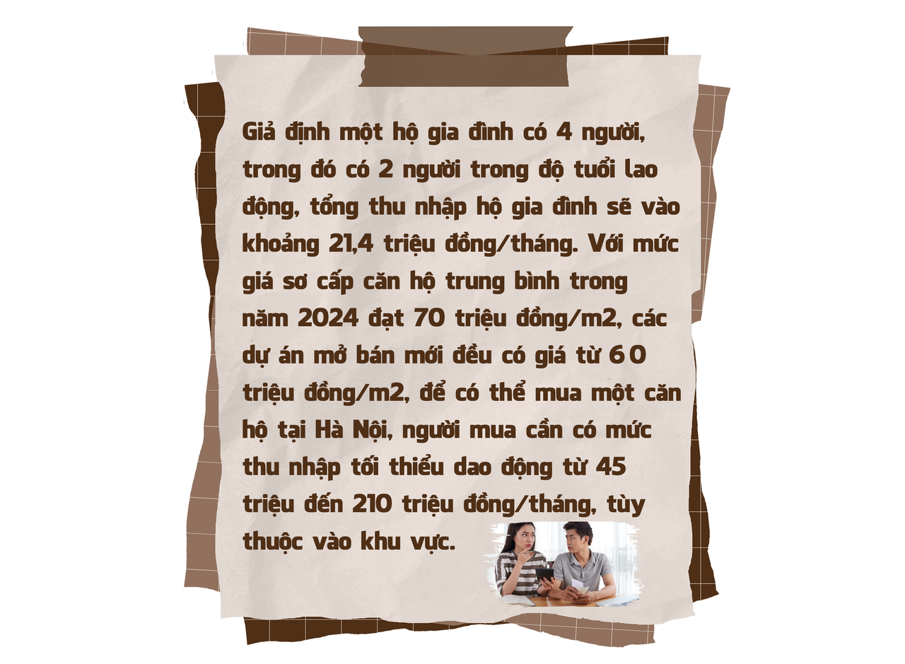 Sự chênh lệch đáng kể giữa thu nhập trung bình thực tế và giá nhà, khiến việc sở hữu nhà ở tại Hà Nội hiện nay không những là thách thức, mà còn là không thể đối với đại đa số các hộ gia đình có mức thu nhập ở mức trung bình, thậm chí là khá.