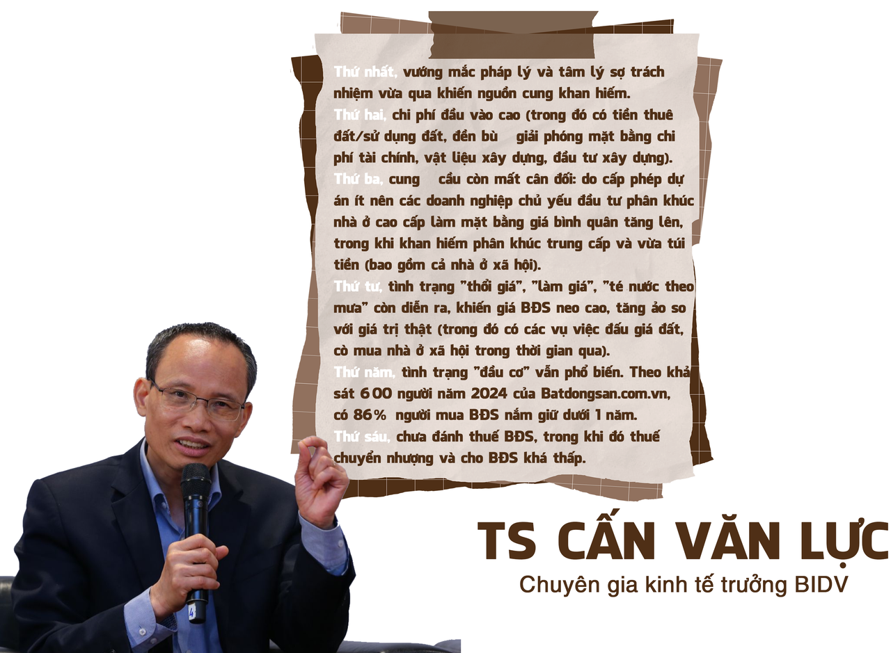 Phân tích rõ hơn về nguyên nhân giá nhà ở tăng cao, TS. Cấn Văn Lực đã chỉ ra 6 nguyên nhân cụ thể:
